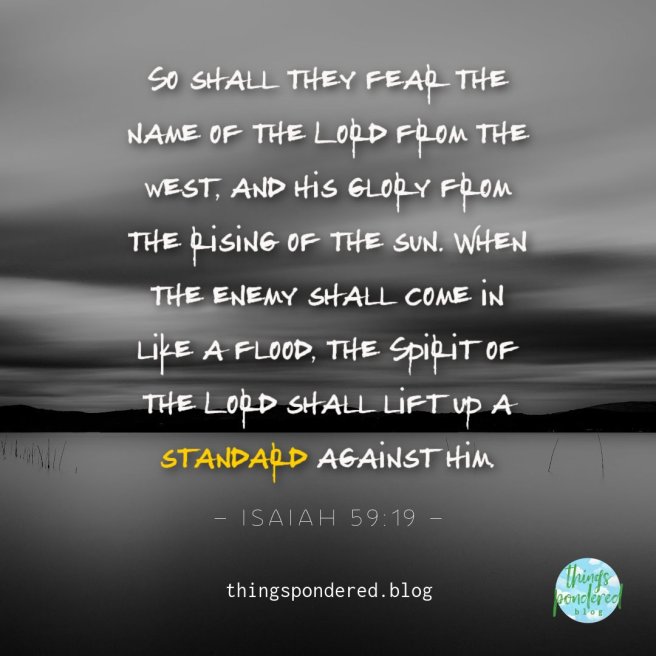 So shall they fear the name of the Lord from the west, and his glory from the rising of the sun. When the enemy shall come in like a flood, the Spirit of the Lord shall lift up a standard against him. (Isaiah 59:19)